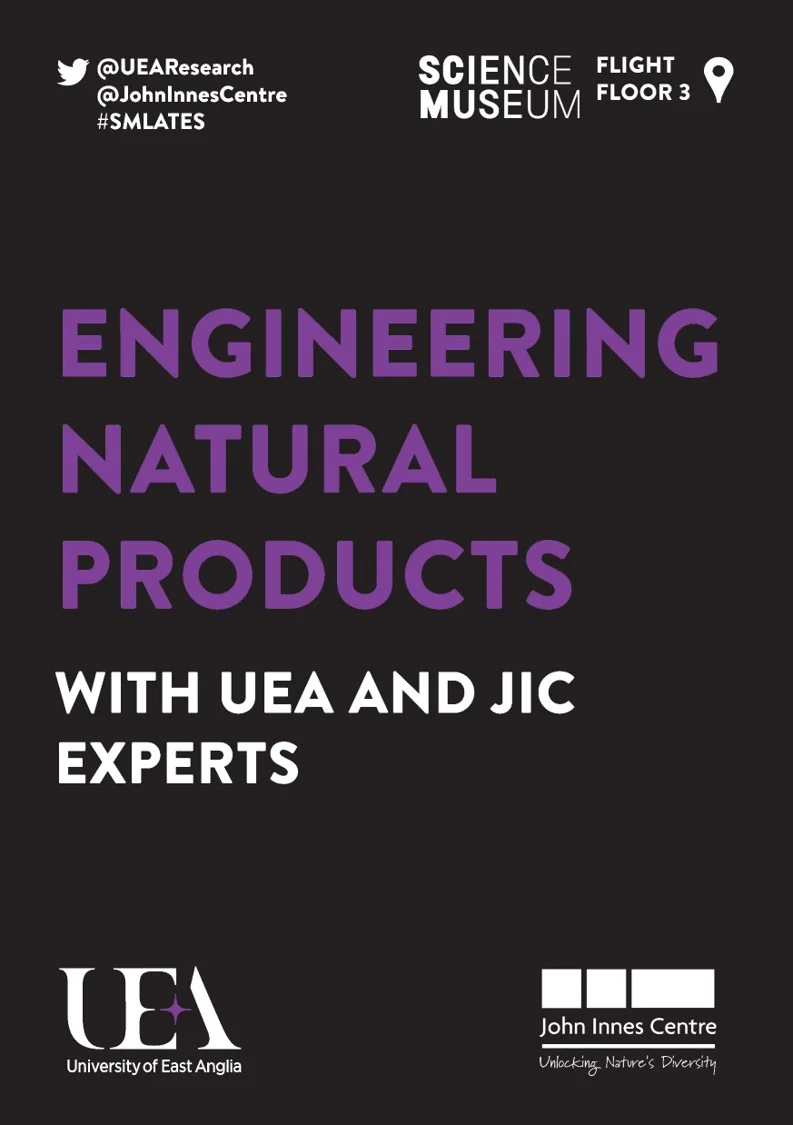 Our stand told the story of avenacin, a triterpene that is found in the roots of oat plants and helps make the plant resistant to fungal diseases. By understanding how these plants produce avenacin from the instruction in their DNA, we explored how scientists can engineer other biological systems to mimic their production. For example, can we transfer these genes from oat plants, into other crops, such as wheat which have no natural antifungal protection?